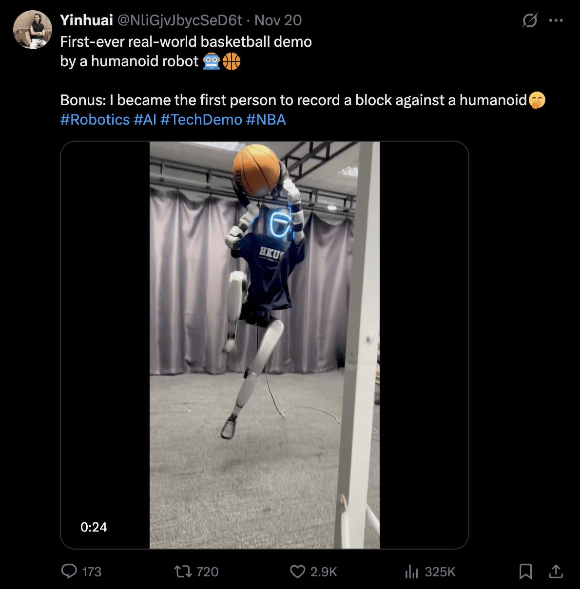 Робот, облечен в пурпурна пола mamianqun, свири Blue and White Porcelain на Jay Chou на пиано. 1,3-метров хуманоид с прякор „Малкият картоф“ изпълнява плавно подреждане в три стъпки на баскетболно игрище по правилата. Друг хуманоиден робот завършва 106-километров междупровинциален преход, поставяйки световен рекорд.