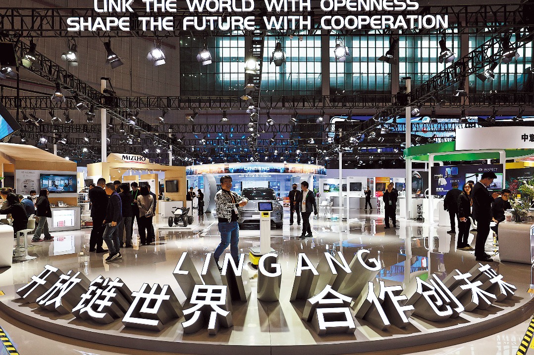 Участниците посещават изложбения щанд на Shanghai Lingang по време на осмото China International Import Expo в Шанхай в сряда. ДЖАН УЕЙ/КИТАЙ ДЕЙЛИ