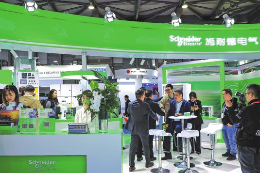 Посетителите се събират на щанда на Schneider Electric по време на изложението в Шанхай през декември. КИТАЙ ДЕЙЛИ