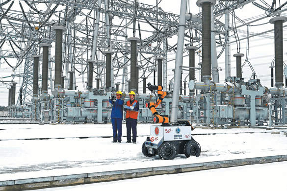 5G-съвместим интелигентен робот извършва проверка на електрическо оборудване заедно с работници по поддръжката в подстанция в Chuzhou, провинция Anhui, на 20 януари. SONG WEIXING/ЗА КИТАЙ ДАЙЛИ