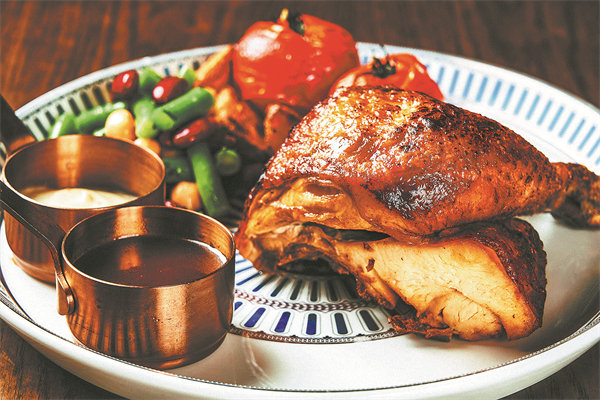 Печено пиле със сос тартар и пилешки сок в Il Teatro. [Photo provided to China Daily]