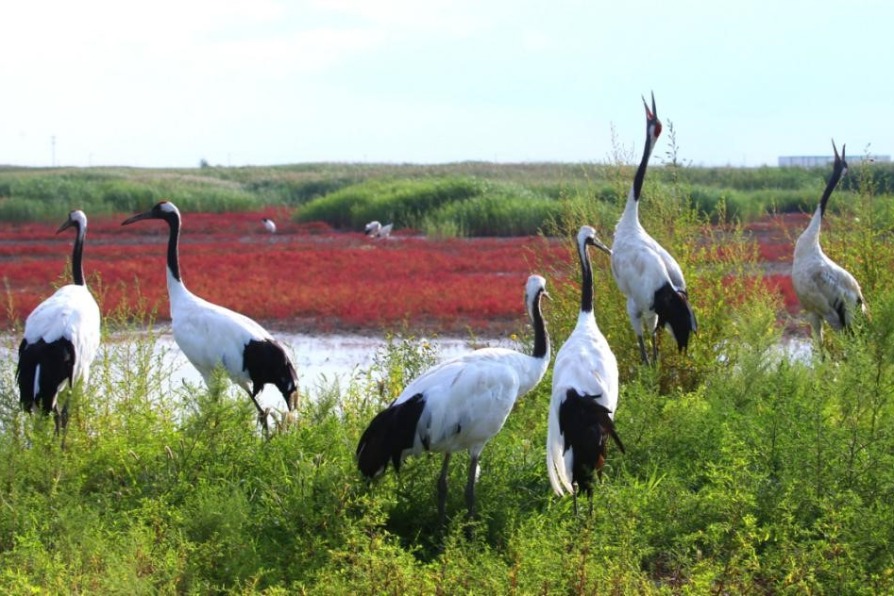Червени жерави се виждат в националния природен резерват Liaohekou. [Photo provided to chinadaily.com.cn]