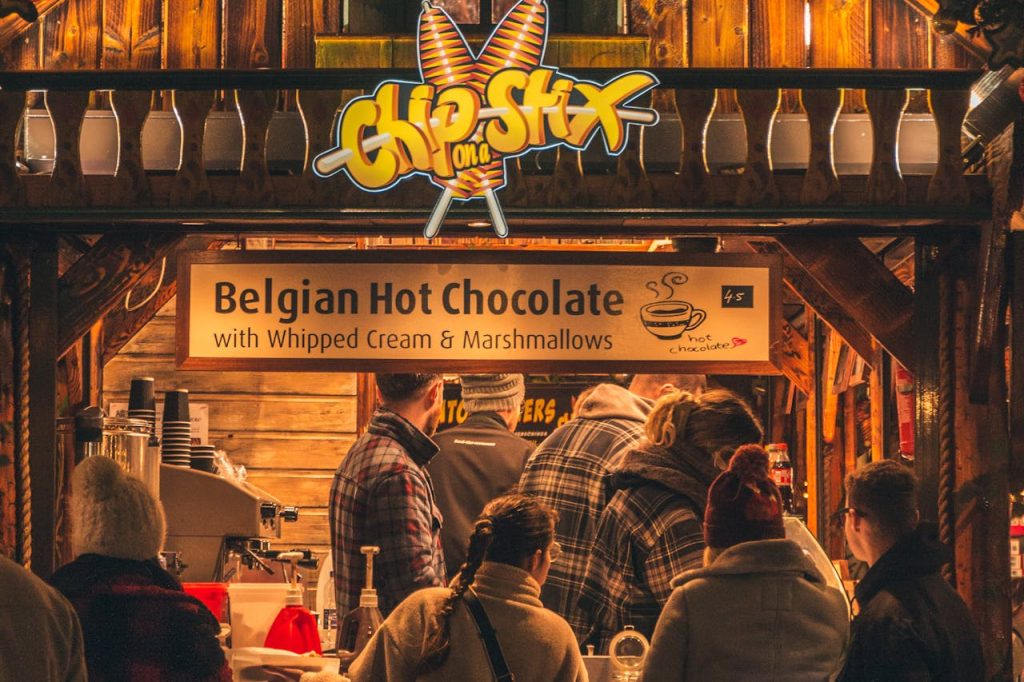 Holiday Food Lane fills the air with irresistible aromas and gives the walk a delicious pause point. Vendors serve warm drinks, pastries, global street food, and festive snacks that feel perfect for the chilly season. Many guests stop for classic treats like hot chocolate or fresh waffles before continuing deeper into the market. The mix of comfort foods and creative offerings makes this area lively and cheerful. People gather around small tables or sip while strolling, enjoying the combination of flavors and atmosphere. This section adds warmth and energy, turning the walk into a sensory holiday experience.
